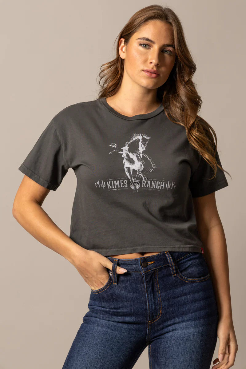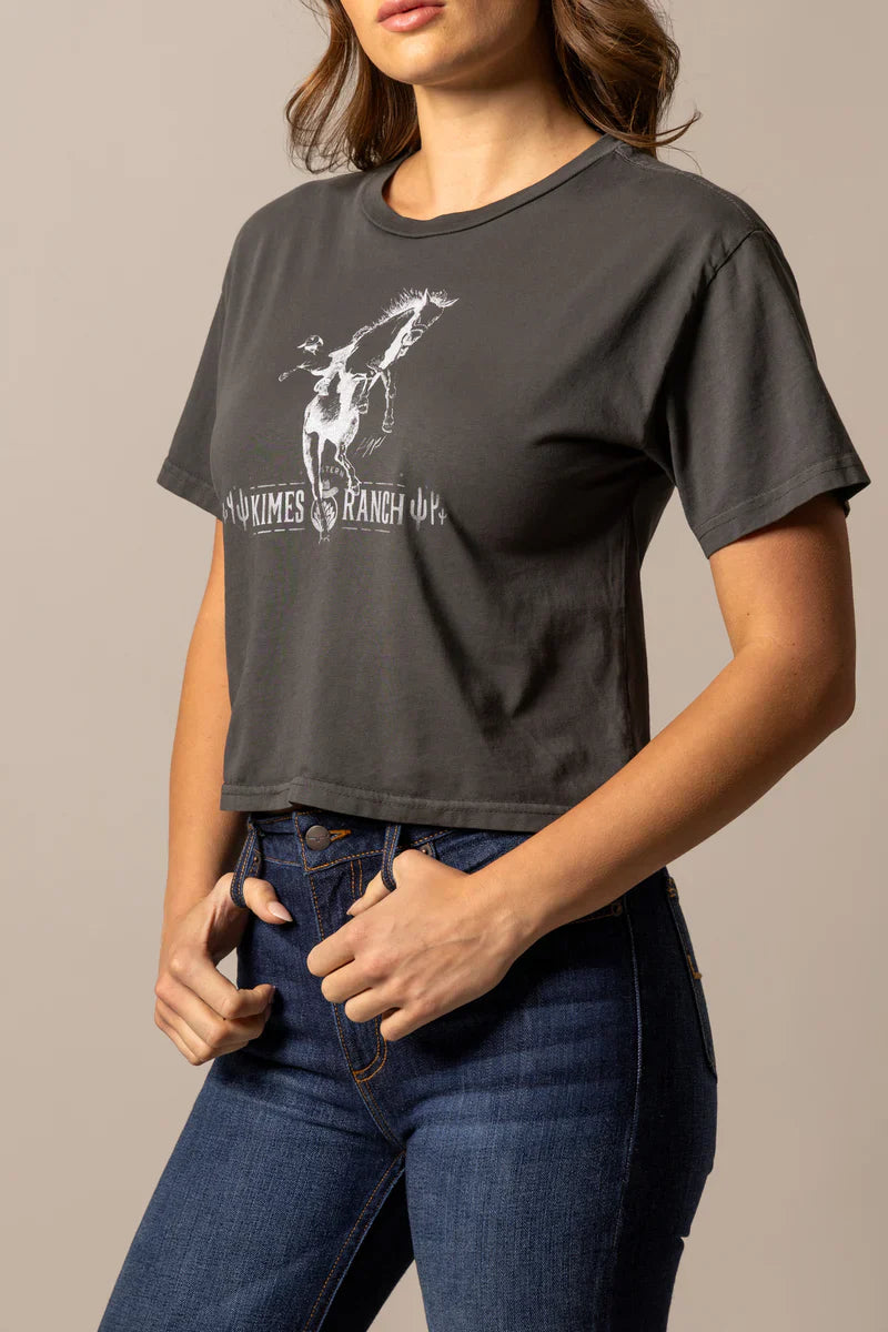 Not every ride’s a smooth one—and that’s exactly the point. The Bad Day Cropped Tee features a striking bucking horse graphic designed by renowned Western artist Randy Paul, capturing the wild, unfiltered spirit of rodeo grit. With its relaxed crop and worn-in softness, this tee is made for tough women who know that even a bad day in the saddle beats a good day anywhere else.